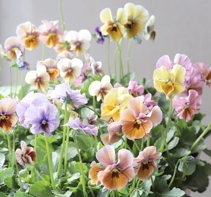 このビオラの魅力は、なんといってもステムの長さ。花首がしっかりしており、切花にしても楽しめます。そしてその華やかさと個性豊かな色合いです。一つ一つの花色は個体差があり、どの色が届くかはお楽しみ。新鮮な苗で、育成状態の良い9cmポット入りが全6個セットになっています。絶妙な色のコントラストが、あなたのガーデンやベランダに生き生きとした表情を与えます。