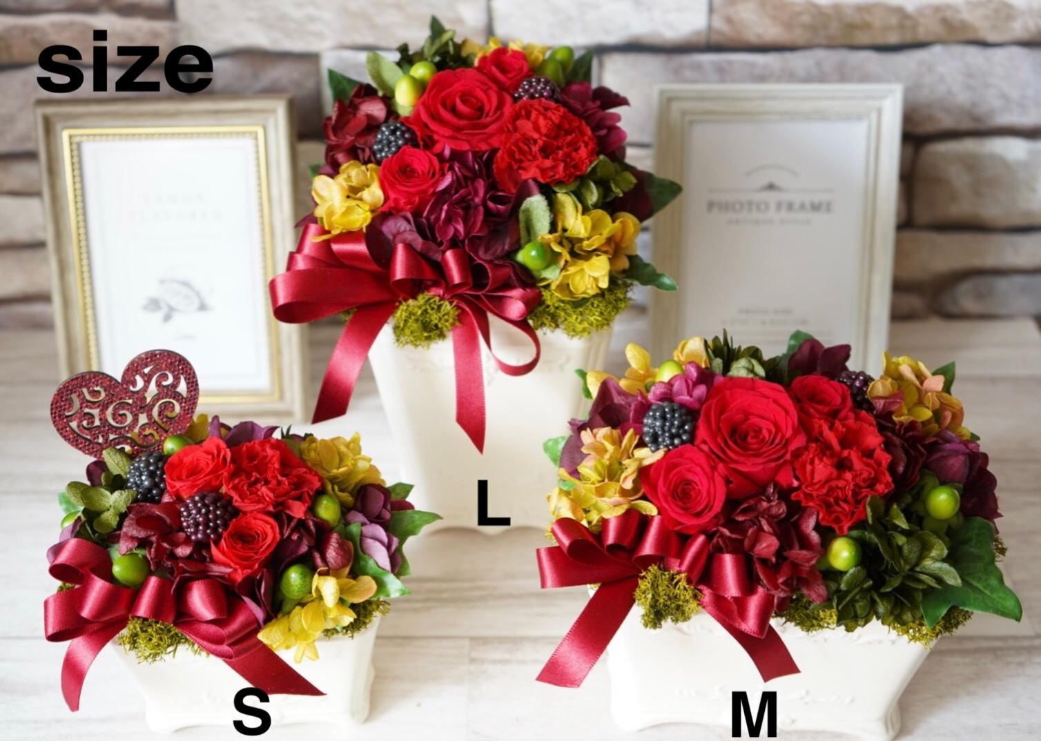 またその時の仕入れ状況により、花材の種類や色、大きさ、配置が写真とは異なる場合がございます 予めご了承ください。