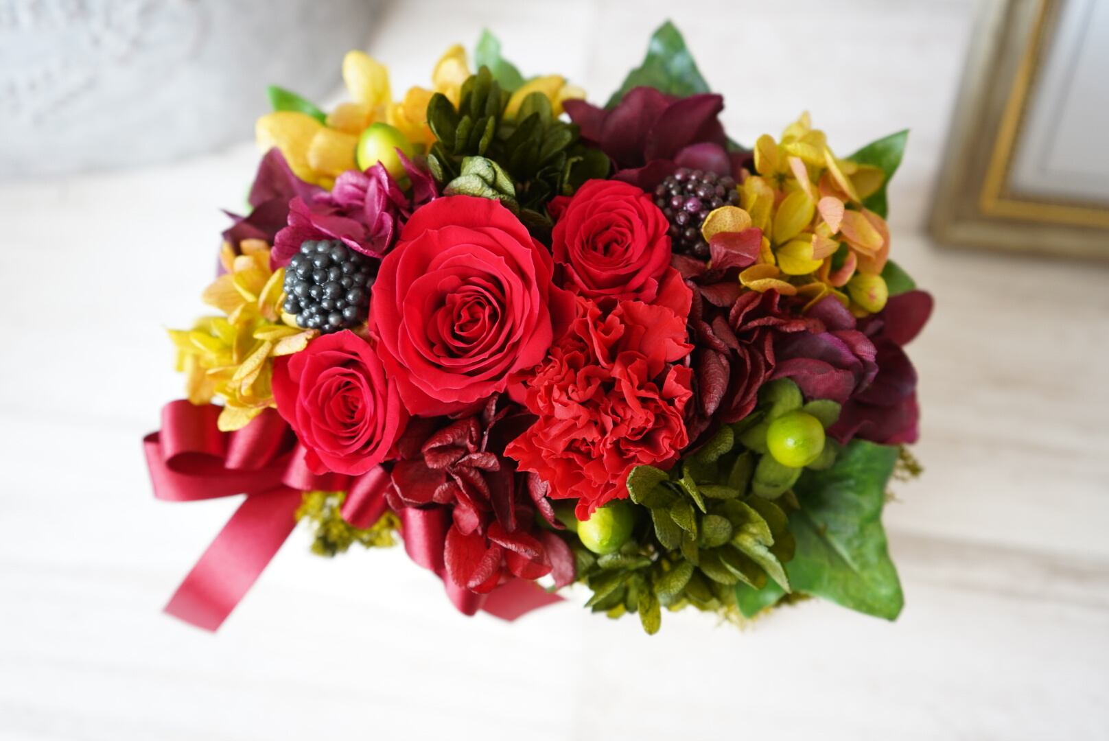 枯れないお花プリザーブドフラワー使用!