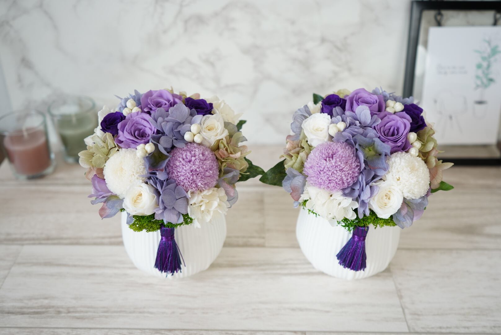 プリザ コレットアレンジ パープルM (一対での販売となります)