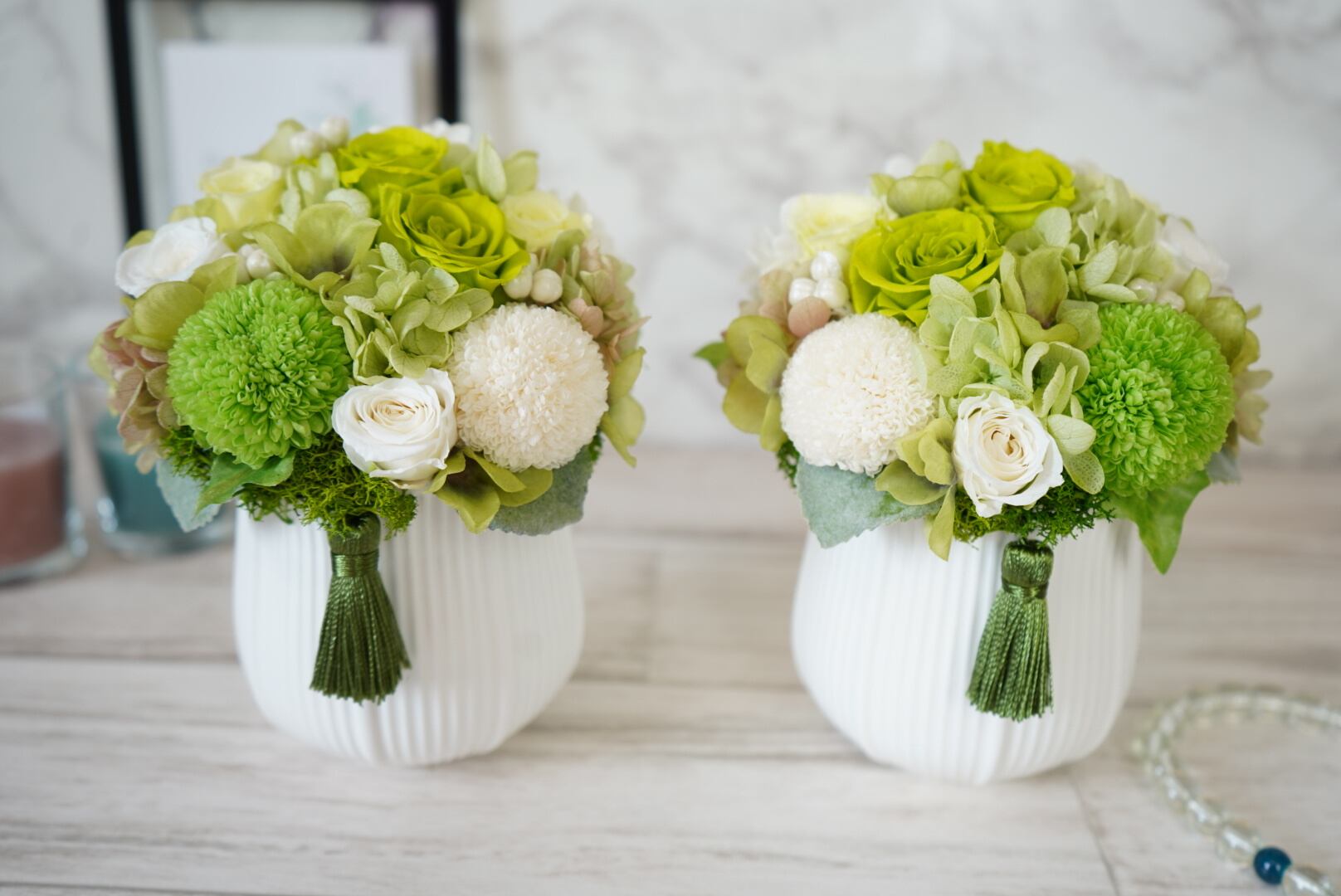プリザ コレットアレンジ グリーンM (一対での販売となります)
