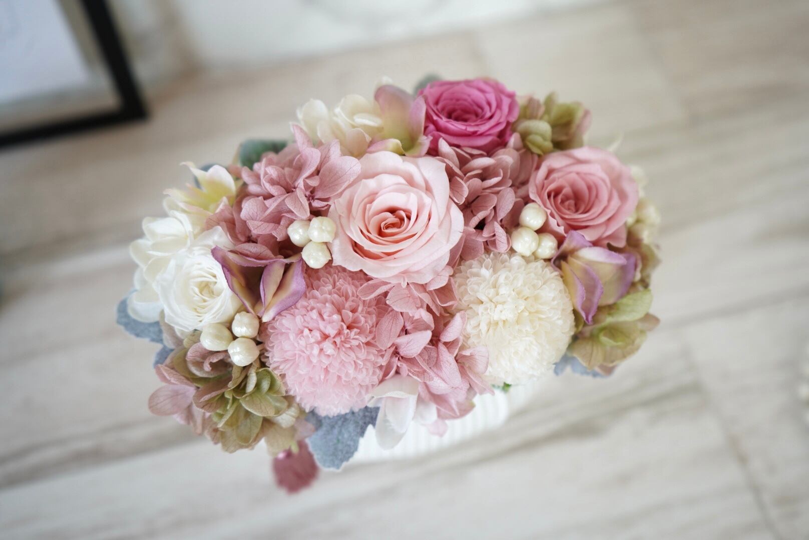 枯れないお花のプリザーブドフラワーを使ったアレンジ